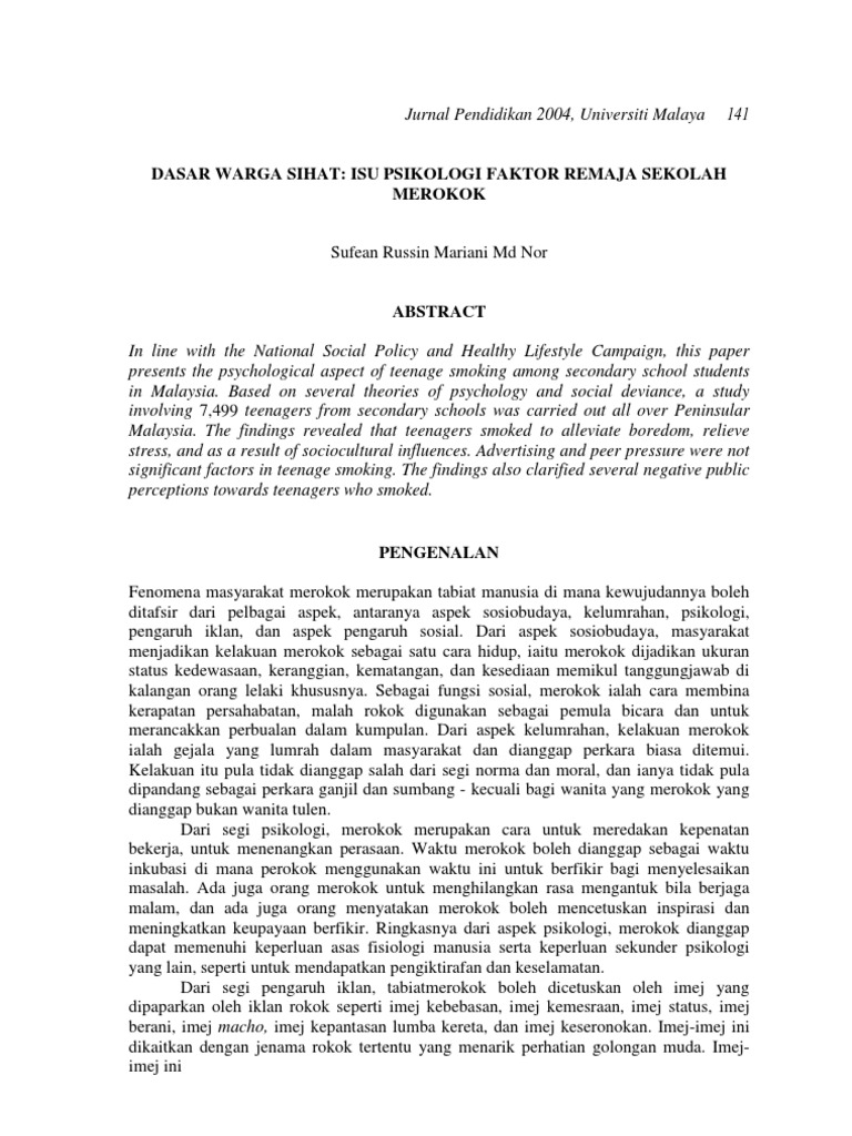 Faktor Remaja Merokok Dan Usaha Menghentikan Karangan Net
