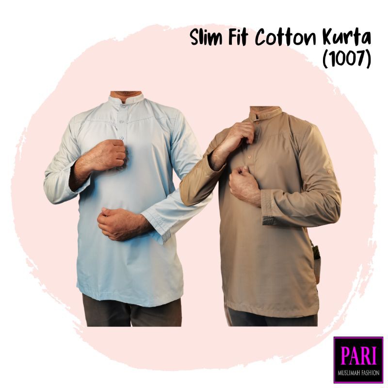 Kurta Lelaki Dewasa Berkolar Cekak Musang Kurta Lengan Panjang Berpoket Slim Fit No Poket 1007
