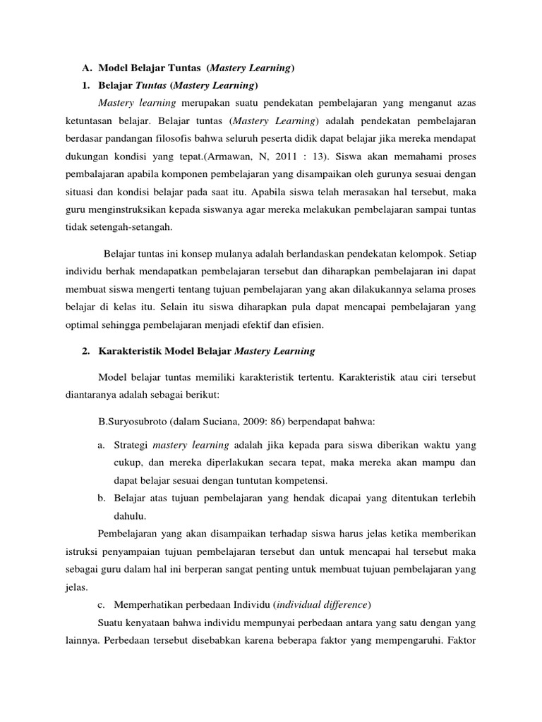 Bab Ii A Model Pembelajaran Tuntas Mastery Learning Ii Pdf Dapat Kita Gunakan Untuk Merancang Pdf Document