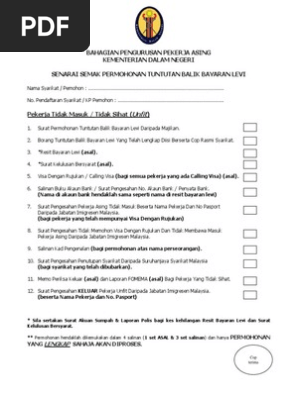 Borang Dan Senarai Semak Tuntutan Semula Levi Pekerja Asing Biasa Pdf