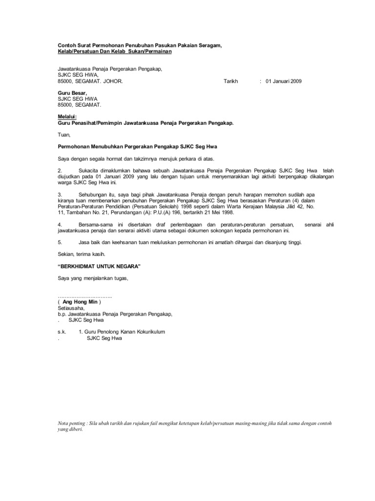 Contoh Surat An Penubuhan Pasukan Pakaian Seragam Pdf