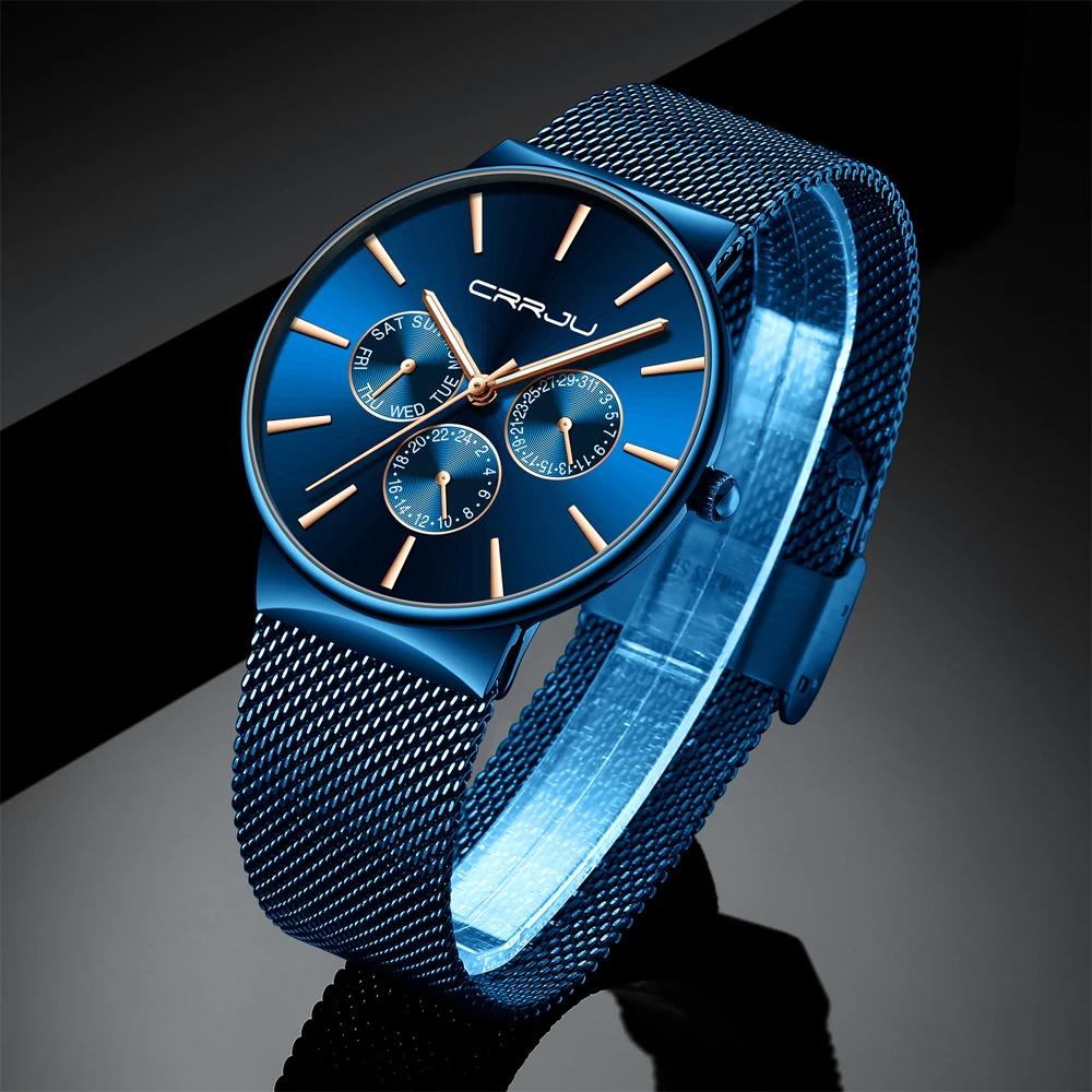 Reloj Hombre Crrju Men Blue Watches Chronograph Ultra Thin Date Fashion Wrist Watch For Men Male Mesh Strap Casual Quartz Clock Quartz Watches Aliexpress