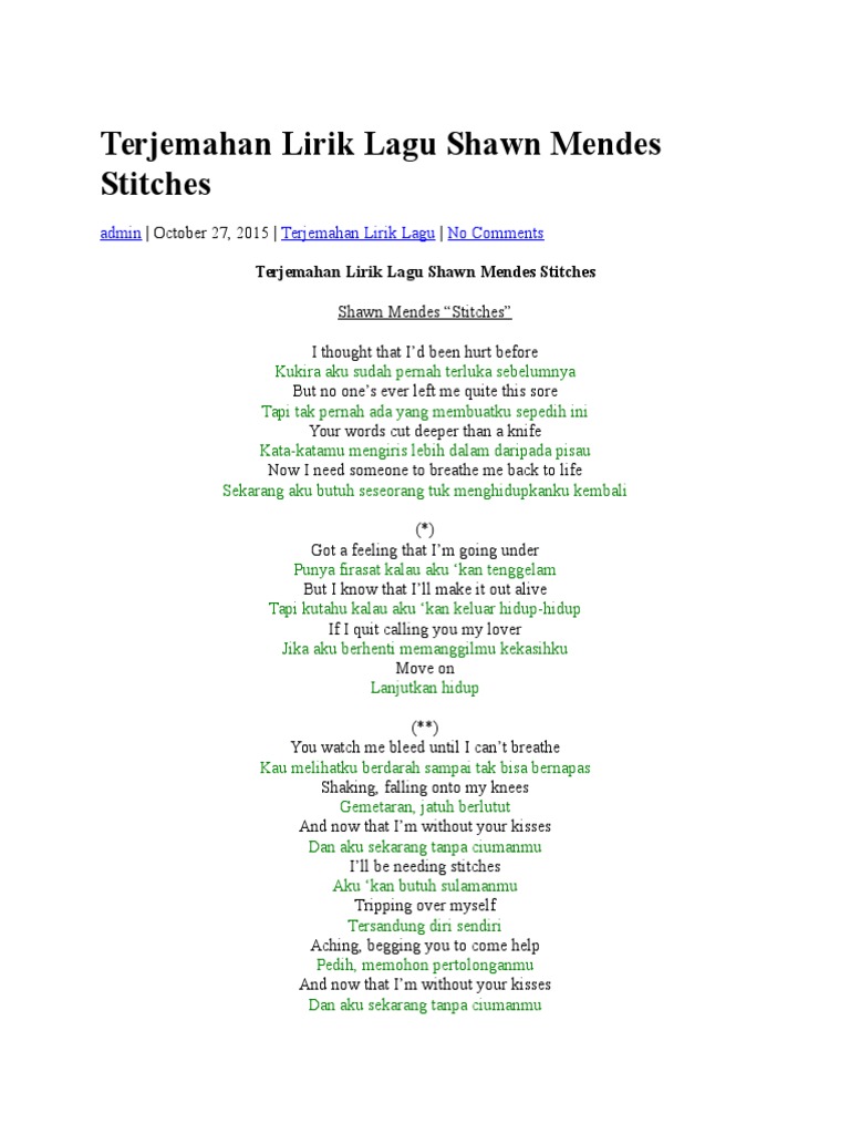 Kumpulan Lirik Lagu Lirik Lagu Shawn Mendes Stitches