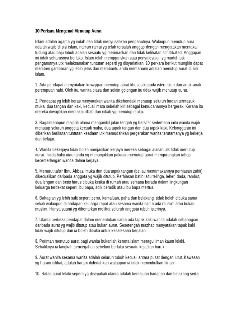 10 Perkara Mengenai Menutup Aurat Pdf