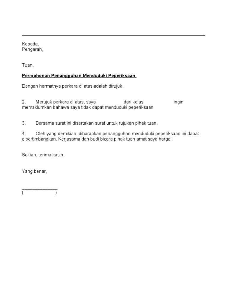 Surat Penangguhan Menduduki Peperiksaan Pdf